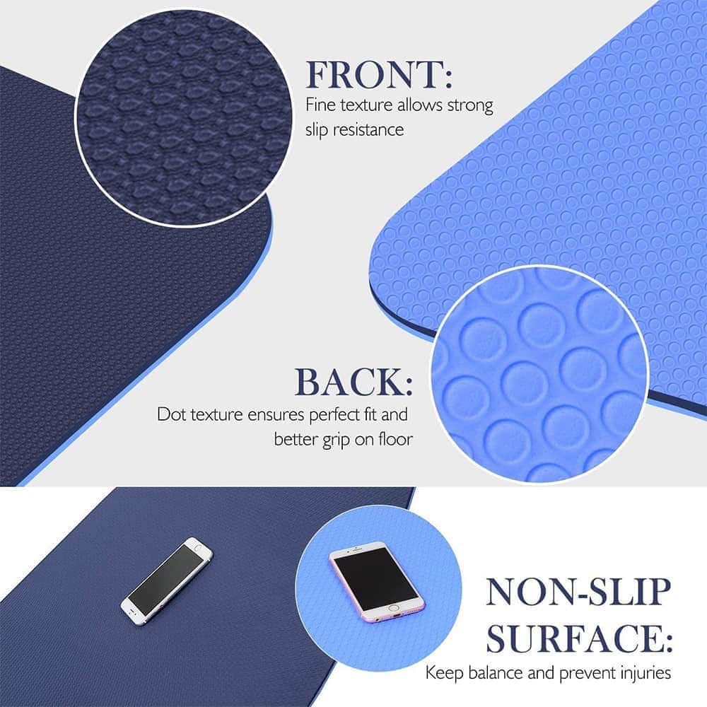 Toplus yoga mat excels at all three with its TPE build, 6mm of thickness, and superb double-sided non-slip texture.